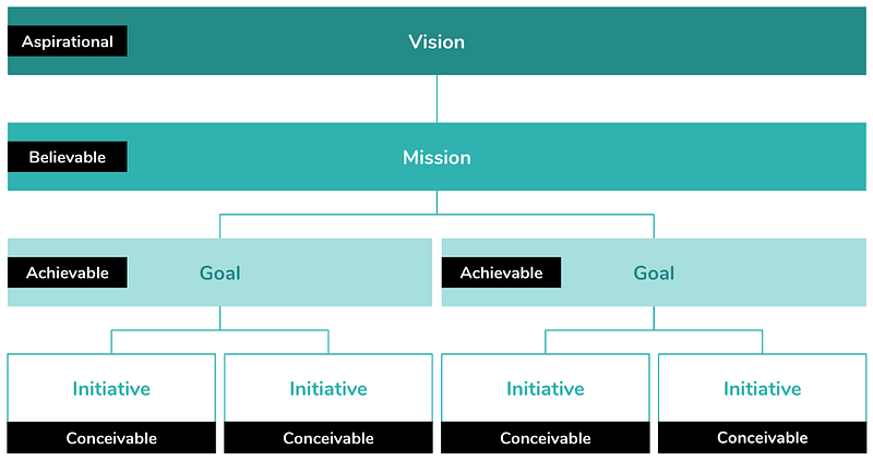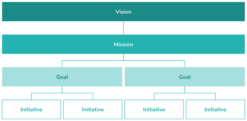 Notice here the cascade from the overarching vision to specific goals the team can focus on — each step should be contributing to the overall business strategy, whether that’s known or assumed.