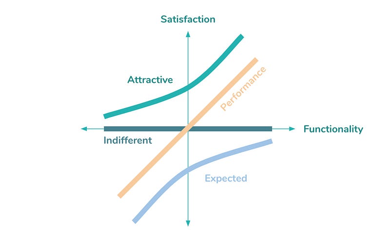 We’ll start to look at this using a method called The Kano Model. This article will outline a basic view of The Kano Model, for more insight then I suggest this fantastic article.